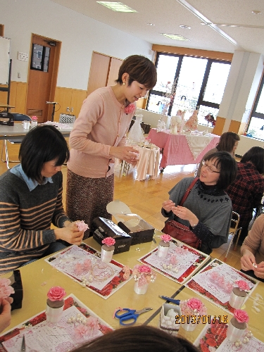 Ayamelliaプロフェッショナルメンバー幼稚園の母の会にて、プリザーブドフラワーレッスンの講義をしました。リサイクルの材料なども使い、お金が掛かっていないけれど、工夫した工程でとても楽しい作品です。幼稚園で同級生のお母さん方を集めたお花の教室です。ママの活躍はお子さんもうれしいですね。