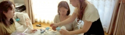 お母さん方を集めたお花の教室小さなプリザーブドフラワーのアレンジ